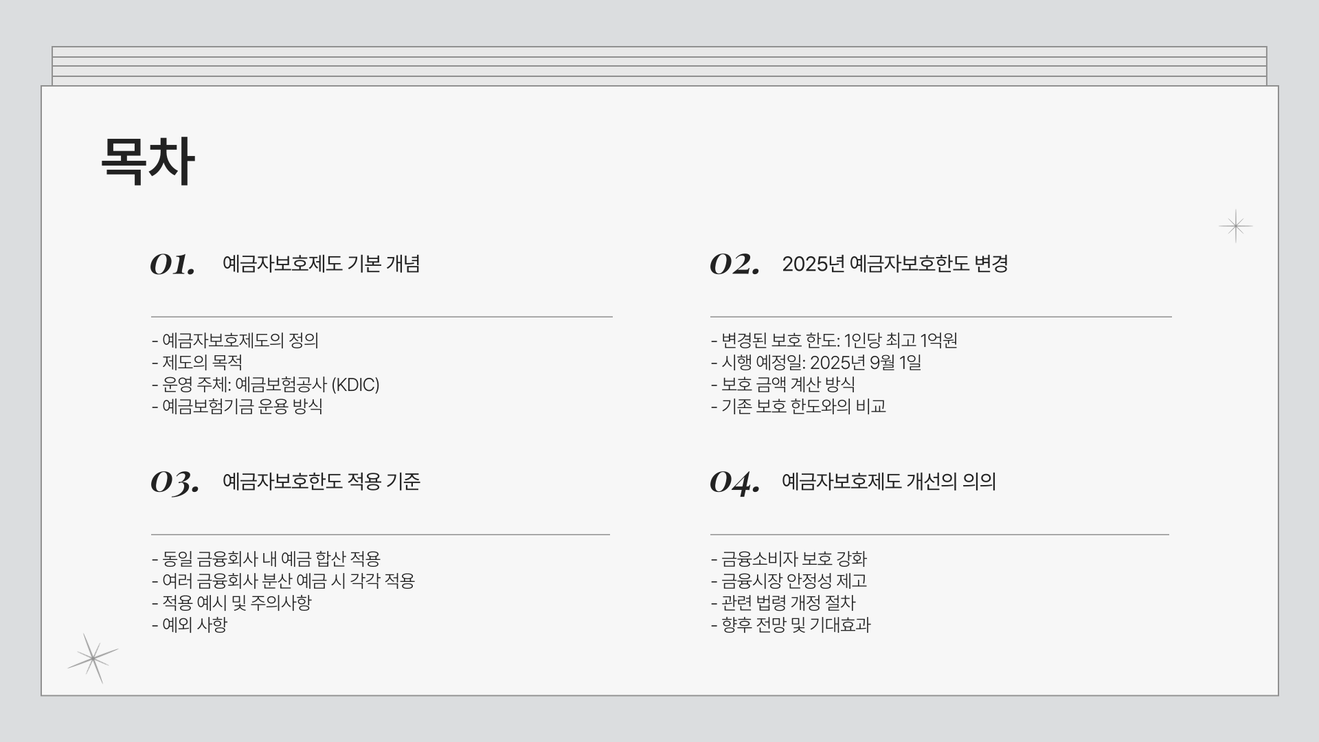 - 목적: 예금자 보호 및 금융시스템의 안정성 유지.