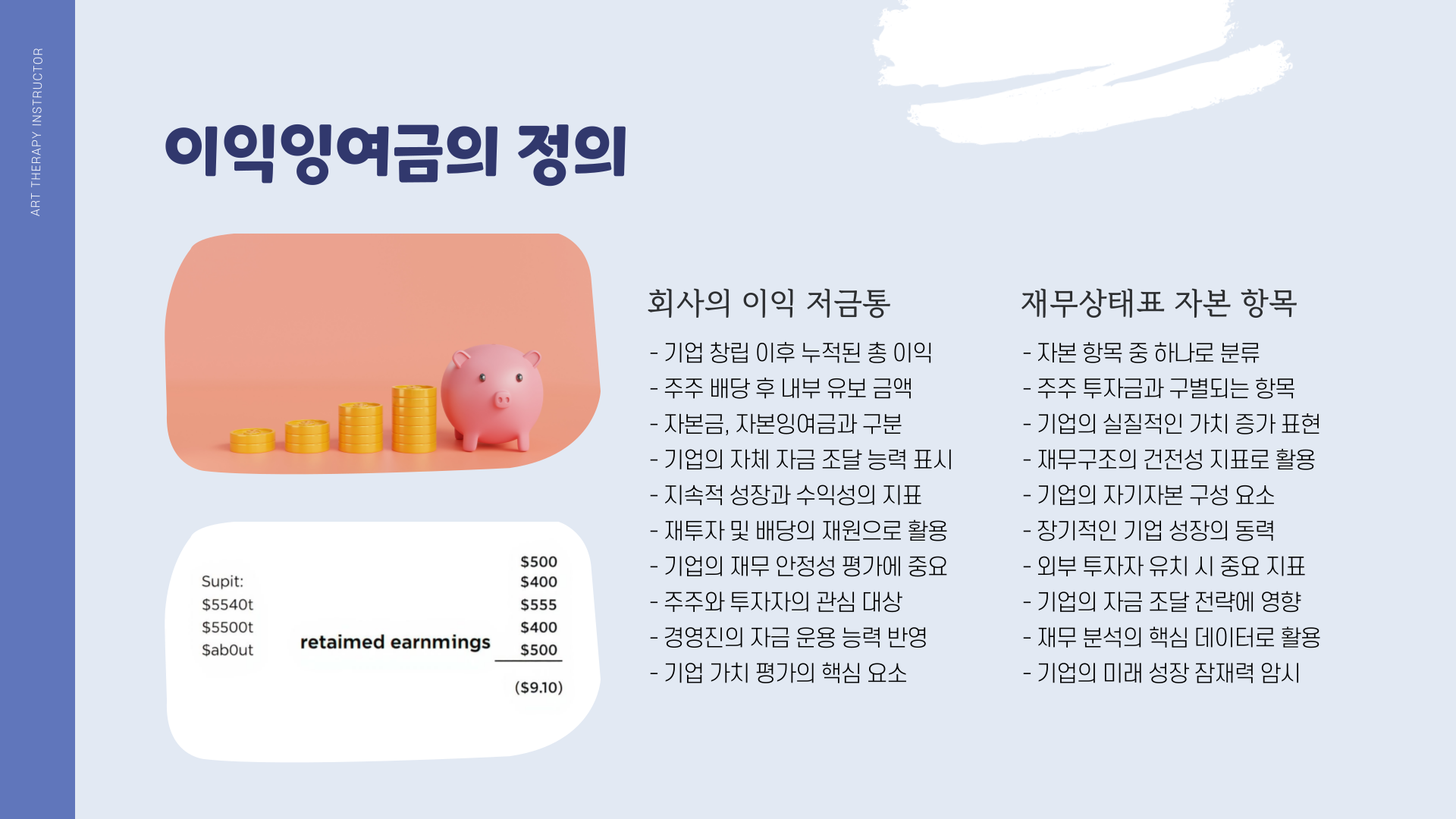 주식 투자를 하거나 기업의 가치를 평가할 때, 우리는 수많은 재무 지표들을 마주하게 됩니다. 그중에서도 기업의 재무상태표(대차대조표)에서 중요한 위치를 차지하는 것이 바로 '이익잉여금(Retained Earnings)'입니다. 많은 분들이 이익잉여금이 단순히 '회사가 쌓아둔 돈'이라고 막연하게 생각하지만, 이 숫자에 담긴 의미를 제대로 이해하면 기업의 과거와 현재, 그리고 미래 성장 가능성까지 엿볼 수 있는 중요한 열쇠가 됩니다.