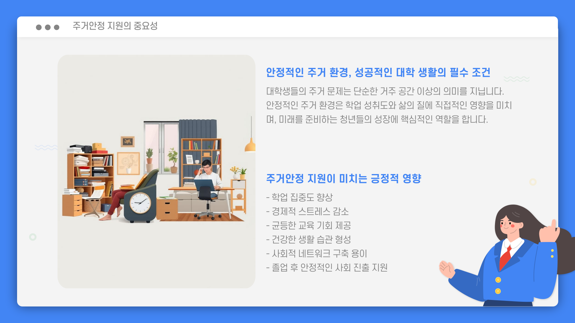 안정적인 주거 환경은 성공적인 대학 생활의 필수 조건입니다.