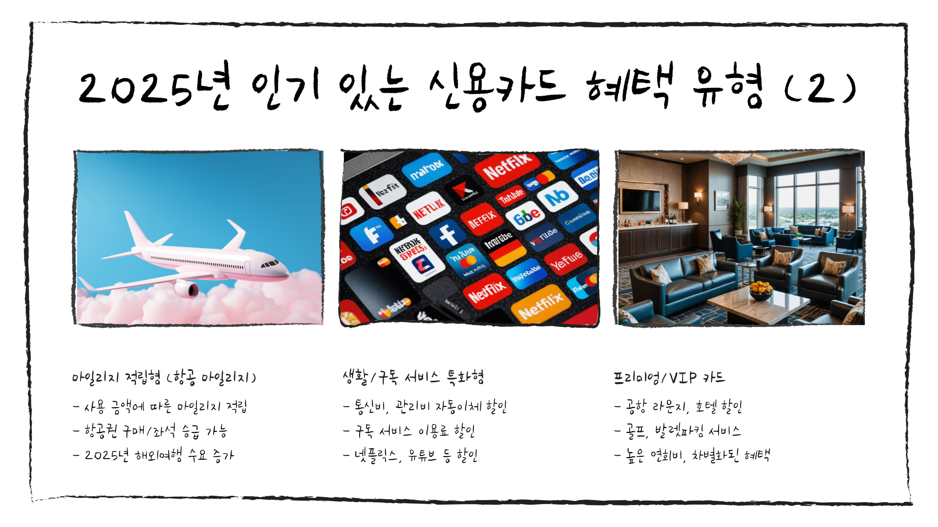 2. 2025년 인기 있는 신용카드 혜택 유형, 어떤 것들이 있을까요? 🎁