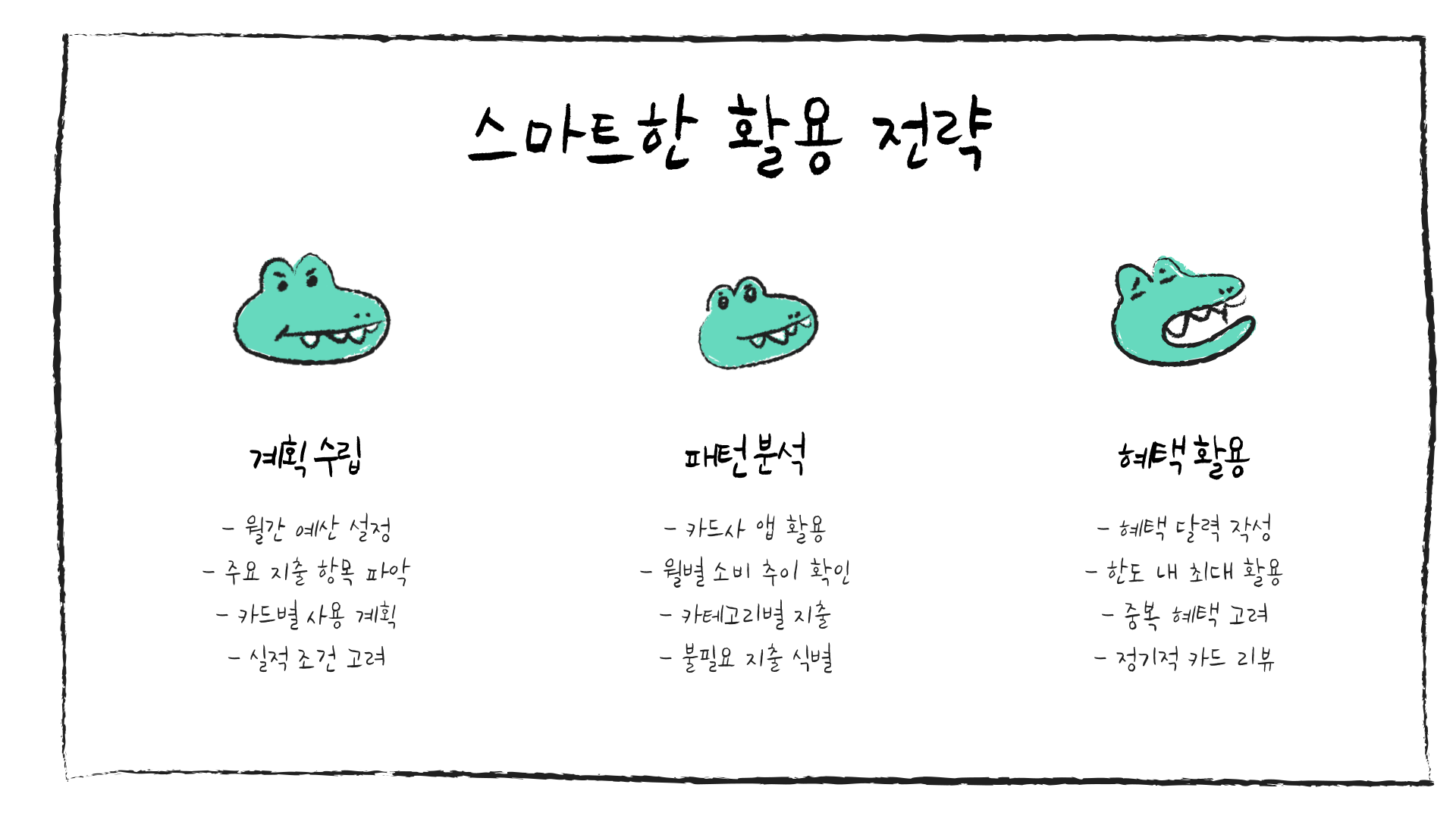 단순히 '체리피킹(혜택만 챙기는 행위)'을 넘어, 나의 소비 생활에 맞는 카드를 '스마트하게 활용'하는 것이 핵심입니다.
