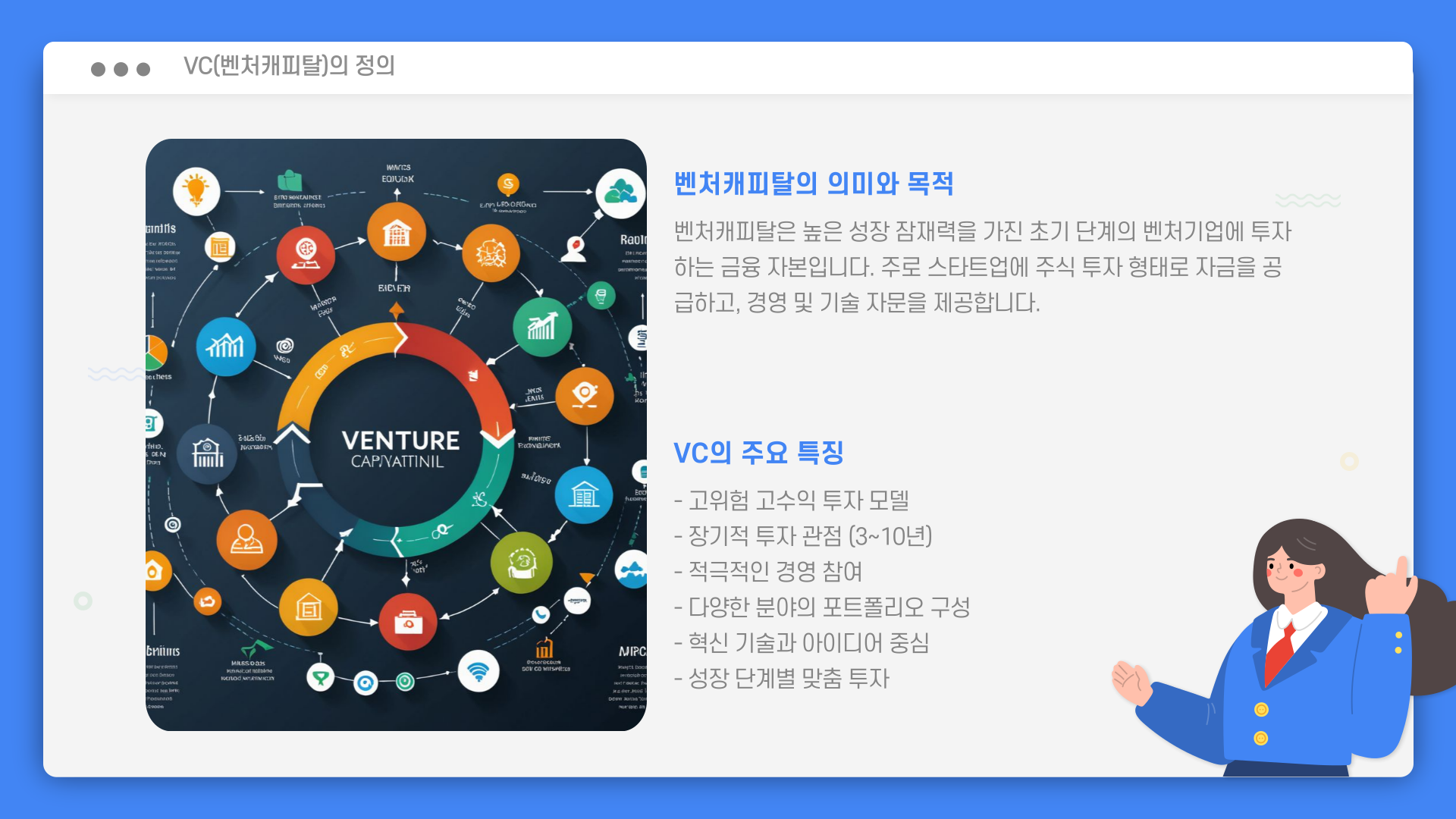 이 글에서는 2025년 스타트업 대표님들과 예비 창업가, 그리고 VC 투자에 관심 있는 모든 분들을 위해, VC의 기본 개념과 종류, 투자 유치 과정, VC가 주목하는 스타트업의 특징, 그리고 2025년 국내 VC 투자 시장의 최신 동향과 전망까지! 성공적인 투자 유치와 건강한 스타트업 생태계 이해를 위한 모든 것을 상세히 알려드립니다.
